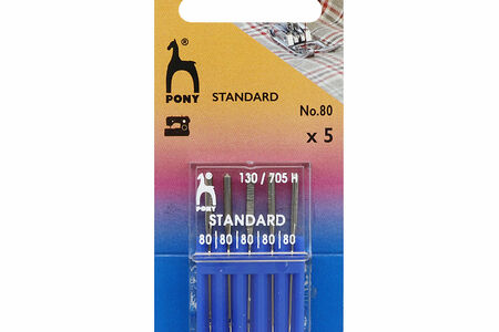 Иглы машинные PONY 'стандарт' №80 подходят для бытовых швейных машин любых современных брендов. Оптимальный выбор для тех, кто шьет дома. Позволяют работать с большинством натуральных и синтетических тканей, а также трикотажем. Изготовлены из высокоуглеродистой стали – из такой же стали делают хирургические иглы. Благодаря хромированию игла легче проходит через материал, не собирает пыль и грязь. Такая игла не потеряет прочность со временем и от многократного использования.