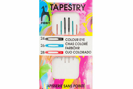Стальные иглы Pony 'Tapestry' предназначены для работы с трикотажными тканями и гобеленами, а также вышивания крестом по сетчатой канве Aida. В комплект входят 6 тонких игл №24-28 со скругленным острием и удлиненным ушком. Цветное ушко позволяет быстрее выбрать иглу нужного размера и упрощает вдевание нити даже при ослабленном зрении. Изготовлены из высокоуглеродистой стали с хромированным покрытием, устойчивы к появлению коррозии. При правильном использовании такие иглы прослужат вам долго. Чтобы защитить пальцы от случайного травмирования, при работе с иглами используйте наперсток. Оптимальное место хранения игл – закрытый футляр или игольница с магнитным основанием.