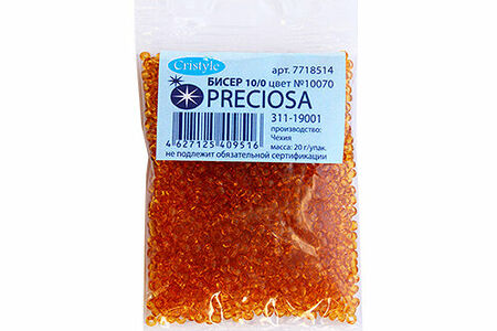 Чешский бисер Preciosa – аккуратно откалиброванный, однородный по размеру и без бракованных элементов. Имеет круглую форму – это универсальная форма, которая подходит и для вышивки, и для плетения украшений, фигурок, других поделок.