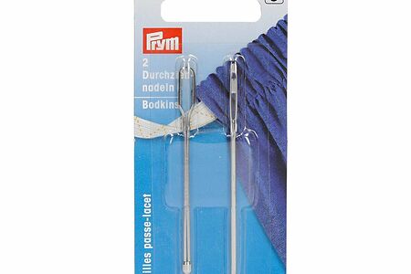 Иглы для протягивания эластичных лент и шнуров.Одна игла состоит из двух разделенных частей в стержневой части с широким ушком и острие иглы скруглено в форме шара. Если заправить в это ушко ленту и затем протянуть ее между половинами стержня иглы вниз, то она будет зажата, и после этого ее можно протянуть через кулиску. Другая игла также с тупым концом, но у нее широкий, уплощенный и за счет этого более тонкий стержень с одним длинным и одним круглым ушком. Длинное ушко предназначено для лент и толстых ниток, а круглое подходит для более тонких ниток и круглых резинок. Скругленное острие отшлифованное и гладкое и поэтому легко скользит по любой тканевой кулиске, не повреждая волокна ткани.Изготовлены иглы из закаленной стали и латуни.Разработаны немецкой компанией Prym, известным мировым лидером в производстве высококачественных принадлежностей для шитья и рукоделия. Ежедневно используя продукцию Prym, Вы ощутите заботу компании о Вашем комфорте и удобстве.