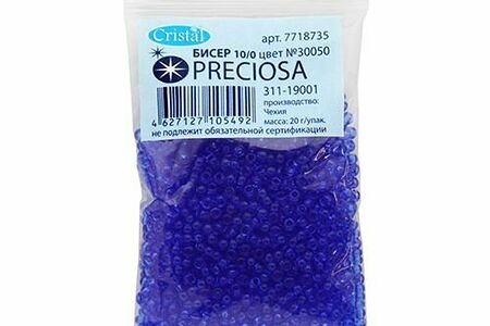 Чешский бисер Preciosa – аккуратно откалиброванный, однородный по размеру и без бракованных элементов. Имеет круглую форму – это универсальная форма, которая подходит и для вышивки, и для плетения украшений, фигурок, других поделок. Бисеру из чешского стекла доверяют мастерицы во всем мире. Он сохраняет цвет и яркость длительное время, в том числе под воздействием косметики, пота, при длительном контакте с кожей. Вышитые бисером изделия допускается стирать в ручном режиме при температуре до 40 градусов Цельсия. Тип: прозрачный. Размер: 10/0 (2,3 мм). Объем: расфасован в пакетики по 20 г.