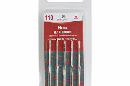 Иглы российской торговой марки 'Арти' производятся на заводе с более чем 80-летней историей (основан в 1941 году). Продукция хорошо известна российскому потребителю.Данные иглы изготовлены из инструментальной стали – 'английской проволоки'. Такая сталь особенно твердая и прочная, устойчива к перегреву, не ломается и не гнется. Иглу подвергают никелированию или хромированию, чтобы она легче проходила через материал, не собирала пыль и грязь. Иглы 'Арти' совместимы с любыми моделями бытовых швейных машин. Острие иглы позволяет легко прокладывать строчку на натуральной и искусственной коже. Номер игл: № 110. Зарубежные аналоги: 130/705Н LL.Количество: 5 штук в упаковке.