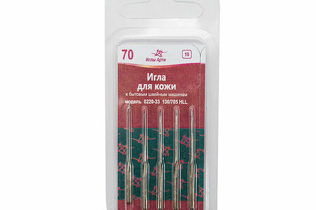 Иглы российской торговой марки 'Арти' производятся на заводе с более чем 80-летней историей (основан в 1941 году). Продукция хорошо известна российскому потребителю.Данные иглы изготовлены из инструментальной стали – 'английской проволоки'. Такая сталь особенно твердая и прочная, устойчива к перегреву, не ломается и не гнется. Иглу подвергают никелированию или хромированию, чтобы она легче проходила через материал, не собирала пыль и грязь. Иглы 'Арти' совместимы с любыми моделями бытовых швейных машин. Острие иглы позволяет легко прокладывать строчку на натуральной и искусственной коже. Номер игл: № 70. Зарубежные аналоги: 130/705Н LL.Количество: 5 штук в упаковке.