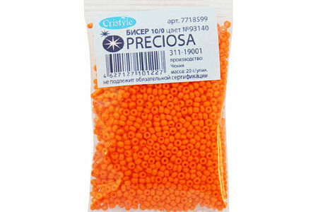 Чешский бисер Preciosa – аккуратно откалиброванный, однородный по размеру и без бракованных элементов. Имеет круглую форму – это универсальная форма, которая подходит и для вышивки, и для плетения украшений, фигурок, других поделок. Бисер Preciosa давно пользуется доверием потребителей. Он сохраняет цвет и яркость длительное время, не теряет качество под воздействием косметики, при длительном контакте с кожей. Вышитые бисером изделия допускается стирать в ручном режиме при температуре до 40 градусов Цельсия. Размер: 10/0 (2,3 мм). Тип: непрозрачный. Количество в упаковке: 20 г.
