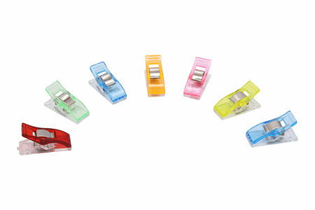 Прищепки для работы с тканями еще один удобный акссесуар для мастериц занимающихся различными видами рукоделия: раскрой и шитье одежды, пэчворк, квилтинг и другие. В упаковке шесть штук прищепок, выполненных из цветной пластмассы с использованием металлических элементов. С помощью прищепок удобно фиксировать фрагменты ткани при сшивании. Идеальная альтернатива булавкам. Особенно хорошо подходят для тканей, на которых долго остаются следы проколов иглой.