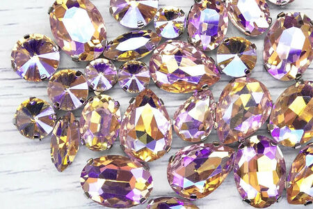 МФ-31 Хрустальные стразы в металлических цапах, форма страз: МИКС, розовый с AB покрытием, 10шт/упак. доставка