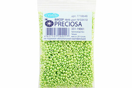 (58410) 331-19001-10/0 Бисер непрозрачный с жемчужным покрытием 10/0, круг.отв., 20гр Preciosa,упак доставка