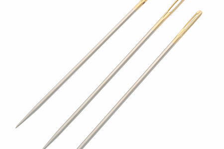 Ручная швейная 'цыганская' игла особой конструкции, характеризующейся увеличенной длиной и диаметром, предназначена для работы с грубыми тканями и плотными материалами, такими как брезент или кожа. Игла-цыганка в основном используется для сшивания деталей при ремонте верхней одежды или обуви, однако может применяться и для создания декоративных отделочных швов. Широкое ушко с позолотой обеспечивает легкое и удобное вдевание нити, подходит для ниток любого типа и толщины. В комплекте 25 игл размера №5/0.