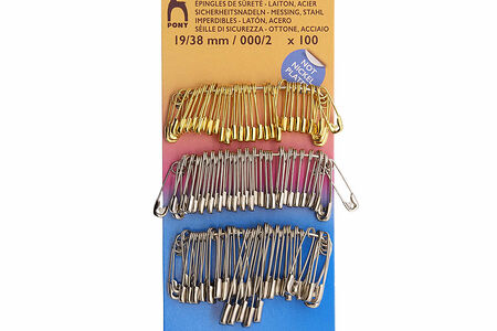 Английские булавки Pony с закрытой застежкой изготовлены латуни – она достаточно прочная, отлично пружинит и не подвержена коррозии. Такие булавки широко используются в быту, при шитье одежды или примерке. С помощью английских булавок можно решить множество задач, например: