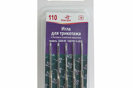 Иглы российской торговой марки 'Арти' производятся на заводе с более чем 80-летней историей (основан в 1941 году). Продукция хорошо известна российскому потребителю.Данные иглы изготовлены из инструментальной стали – 'английской проволоки'. Такая сталь особенно твердая и прочная, устойчива к перегреву, не ломается и не гнется. Иглу подвергают никелированию или хромированию, чтобы она легче проходила через материал, не собирала пыль и грязь. Иглы 'Арти' совместимы с любыми моделями бытовых швейных машин. Конструкция иглы со слегка закругленным острием позволяет работать с трикотажным полотном. Номер игл: № 110. Зарубежные аналоги: 130 / 705Н.Количество: 5 штук в упаковке.
