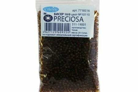 Чешский бисер Preciosa – аккуратно откалиброванный, однородный по размеру и без бракованных элементов. Имеет круглую форму – это универсальная форма, которая подходит и для вышивки, и для плетения украшений, фигурок, других поделок. Бисеру из чешского стекла доверяют мастерицы во всем мире. Он сохраняет цвет и яркость длительное время, в том числе под воздействием косметики, пота, при длительном контакте с кожей. Вышитые бисером изделия допускается стирать в ручном режиме при температуре до 40 градусов Цельсия. Тип: прозрачный. Размер: 10/0 (2,3 мм). Объем: расфасован в пакетики по 20 г.