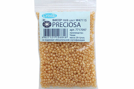 Чешский бисер Preciosa – аккуратно откалиброванный, однородный по размеру и без бракованных элементов. Имеет круглую форму – это универсальная форма, которая подходит и для вышивки, и для плетения украшений, фигурок, других поделок. Бисер Preciosa давно пользуется доверием потребителей. Он сохраняет цвет и яркость длительное время, не теряет качество под воздействием косметики, при длительном контакте с кожей. Вышитые бисером изделия допускается стирать в ручном режиме при температуре до 40 градусов Цельсия. Размер: 10/0 (2,3 мм). Тип: жемчужный. Количество в упаковке: 20 г.