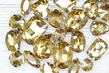 МФ-16 Хрустальные стразы в металлических цапах, форма страз: МИКС, шампань, 10шт/упак доставка