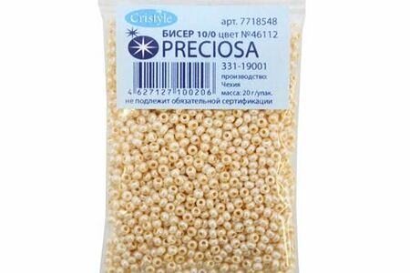 Чешский бисер Preciosa – аккуратно откалиброванный, однородный по размеру и без бракованных элементов. Имеет круглую форму – это универсальная форма, которая подходит и для вышивки, и для плетения украшений, фигурок, других поделок. Бисеру из чешского стекла доверяют мастерицы во всем мире. Он сохраняет цвет и яркость длительное время, в том числе под воздействием косметики, пота, при длительном контакте с кожей. Вышитые бисером изделия допускается стирать в ручном режиме при температуре до 40 градусов Цельсия. Тип: жемчужный. Размер: 10/0 (2,3 мм). Объем: расфасован в пакетики по 20 г.