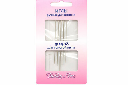 Стальные иглы Hobby&Pro разной длины имеют удобную форму для ручной штопки толстой нитью. Длинное ушко с небольшим желобком позволяет без особых усилий вдеть нить. Игла имеет равномерную толщину и острый конец, который легко проходит сквозь материал.