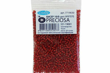 Чешский бисер Preciosa – аккуратно откалиброванный, однородный по размеру и без бракованных элементов. Имеет круглую форму – это универсальная форма, которая подходит и для вышивки, и для плетения украшений, фигурок, других поделок. Бисеру из чешского стекла доверяют мастерицы во всем мире. Он сохраняет цвет и яркость длительное время, в том числе под воздействием косметики, пота, при длительном контакте с кожей. Вышитые бисером изделия допускается стирать в ручном режиме при температуре до 40 градусов Цельсия. Тип: прозрачный матовый с серебристым центром. Размер: 10/0 (2,3 мм). Объем: расфасован в пакетики по 20 г.