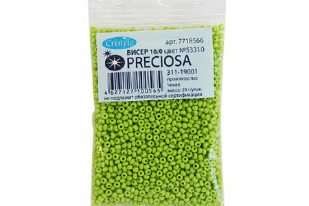 Чешский бисер Preciosa – аккуратно откалиброванный, однородный по размеру и без бракованных элементов. Имеет круглую форму – это универсальная форма, которая подходит и для вышивки, и для плетения украшений, фигурок, других поделок. Бисер Preciosa давно пользуется доверием потребителей. Он сохраняет цвет и яркость длительное время, не теряет качество под воздействием косметики, при длительном контакте с кожей. Вышитые бисером изделия допускается стирать в ручном режиме при температуре до 40 градусов Цельсия. Размер: 10/0 (2,3 мм). Тип: непрозрачный. Количество в упаковке: 20 г.