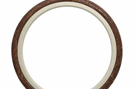 Внутренний обод изготовлен из пластика, внешняя часть – из каучука. Рисунок внешней части пялет имитирует дерево.