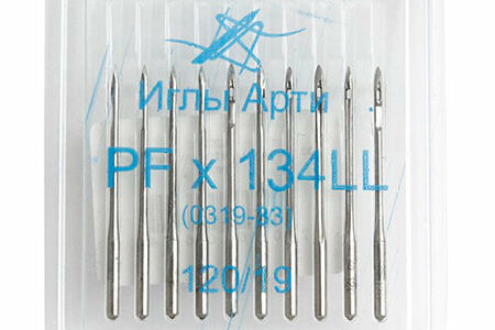 Иглы российской торговой марки 'Арти' производятся на заводе с более чем 80-летней историей (основан в 1941 году). Продукция хорошо известна российскому потребителю. Данные иглы изготовлены из инструментальной стали – 'английской проволоки'. Такая сталь особенно твердая и прочная, устойчива к перегреву, не ломается и не гнется. Иглу подвергают хромированию, чтобы она легче проходила через материал, не собирала пыль и грязь. Иглы данной модели предназначены для промышленных швейных машин. Используются при шитье заготовок для обуви из натуральной или искусственной кожи.