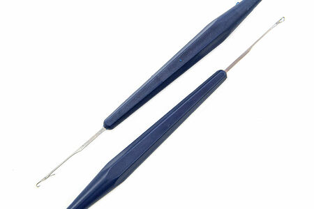 Игла для поднятия петель позволяет исправить внешний вид изделия, с ее помощью легко устранить затяжки или вытянутые петли. Подходит для работы с трикотажем, а также тонкими тканями. Если нить оборвалась, игла позволяет вплести новую нить. Крючок можно также использовать для вышивания пайетками, бисером методом цепного стежка.
