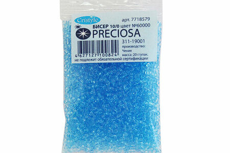 Чешский бисер Preciosa – аккуратно откалиброванный, однородный по размеру и без бракованных элементов. Имеет круглую форму – это универсальная форма, которая подходит и для вышивки, и для плетения украшений, фигурок, других поделок. Бисер Preciosa давно пользуется доверием потребителей. Он сохраняет цвет и яркость длительное время, не теряет качество под воздействием косметики, при длительном контакте с кожей. Вышитые бисером изделия допускается стирать в ручном режиме при температуре до 40 градусов Цельсия. Размер: 10/0 (2,3 мм). Тип: прозрачный. Количество в упаковке: 20 г.