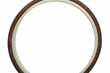 Внутренний обод изготовлен из пластика, внешняя часть – из каучука. Рисунок внешней части пялет имитирует дерево.