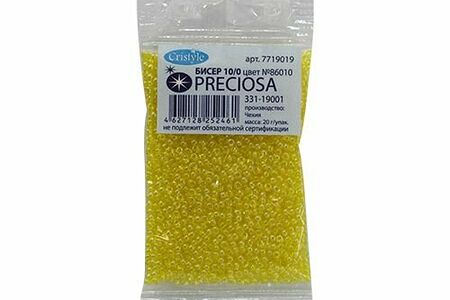 Чешский бисер Preciosa – аккуратно откалиброванный, однородный по размеру и без бракованных элементов. Имеет круглую форму – это универсальная форма, которая подходит и для вышивки, и для плетения украшений, фигурок, других поделок. Бисер Preciosa давно пользуется доверием потребителей. Он сохраняет цвет и яркость длительное время, не теряет качество под воздействием косметики, при длительном контакте с кожей. Вышитые бисером изделия допускается стирать в ручном режиме при температуре до 40 градусов Цельсия. Размер: 10/0 (2,3 мм). Тип: прозрачный с покрытием. Количество в упаковке: 20 г.