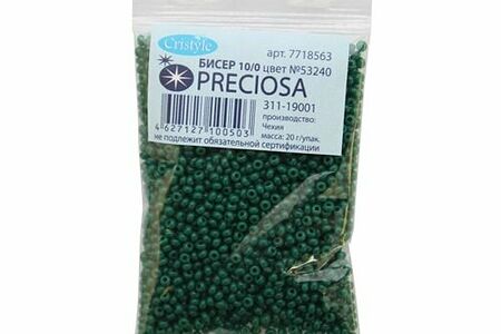 Чешский бисер Preciosa – аккуратно откалиброванный, однородный по размеру и без бракованных элементов. Имеет круглую форму – это универсальная форма, которая подходит и для вышивки, и для плетения украшений, фигурок, других поделок. Бисер Preciosa давно пользуется доверием потребителей. Он сохраняет цвет и яркость длительное время, не теряет качество под воздействием косметики, при длительном контакте с кожей. Вышитые бисером изделия допускается стирать в ручном режиме при температуре до 40 градусов Цельсия. Размер: 10/0 (2,3 мм). Тип: непрозрачный. Количество в упаковке: 20 г.