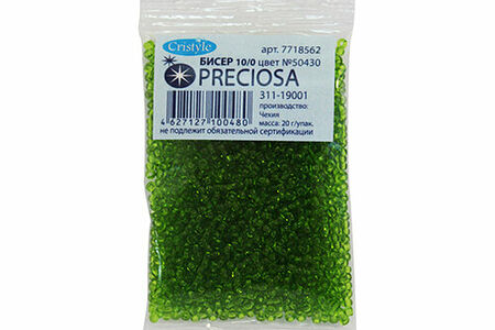Чешский бисер Preciosa – аккуратно откалиброванный, однородный по размеру и без бракованных элементов. Имеет круглую форму – это универсальная форма, которая подходит и для вышивки, и для плетения украшений, фигурок, других поделок. Бисер Preciosa давно пользуется доверием потребителей. Он сохраняет цвет и яркость длительное время, не теряет качество под воздействием косметики, при длительном контакте с кожей. Вышитые бисером изделия допускается стирать в ручном режиме при температуре до 40 градусов Цельсия. Размер: 10/0 (2,3 мм). Тип: прозрачный. Количество в упаковке: 20 г.