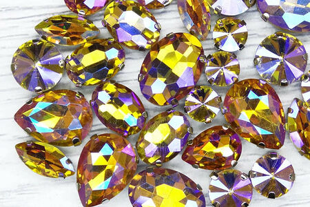 МФ-33 Хрустальные стразы в металлических цапах, форма страз: МИКС, желтый с AB покрытием, 10шт/упак доставка