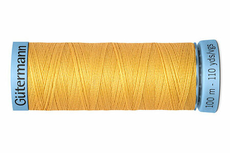Gütermann S303 – нить премиального качества из 100% шелка. Нитки понравятся тем, кто ценит натуральные материалы, аккуратные строчки и шелковистый блеск. Прекрасно сочетаются с тонкими деликатными тканями – атласом, сатином. Подходят для разных видов швов: соединительных, фасонных и декоративных, оверлочных и обметочных. Доспускается использовать для пришивания пуговиц и обметки петель.