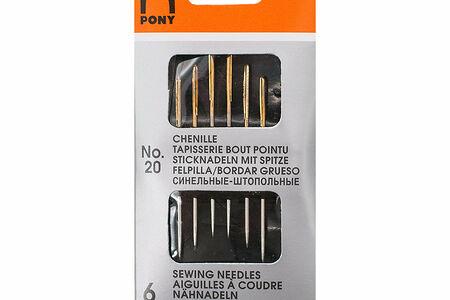 Иглы бренда 'Pony' изготовлены из высокоуглеродистой стали – из такой же стали делают хирургические иглы. Поверхность иглы хромируется. Такая игла не потеряет прочность со временем и от многократного использования. Набор Pony 'Chenille Gold Plated' включает в себя 6 стальных игл. Прочные толстые иглы с широким ушком и острым концом способны одновременно прокалывать несколько слоев ткани. Идеальный выбор для работы в технике 'синель'. Подходят также для вышивания лентами, гладью или для мелкого ремонта трикотажных и текстильных изделий. Ушко иглы позолочено, поэтому вдевать в него нить удобно даже при ослабленном зрении. Компания Pony известна во всем мире, ее ценят за широкий ассортимент и высокое качество продукции. Длина игл: 44 мм. Толщина игл: 1,09 мм. Номер игл: №20.