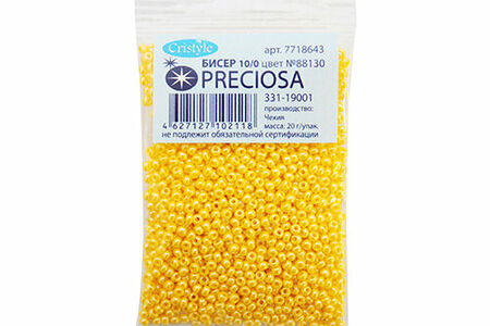 Чешский бисер Preciosa – аккуратно откалиброванный, однородный по размеру и без бракованных элементов. Имеет круглую форму – это универсальная форма, которая подходит и для вышивки, и для плетения украшений, фигурок, других поделок. Бисер Preciosa давно пользуется доверием потребителей. Он сохраняет цвет и яркость длительное время, не теряет качество под воздействием косметики, при длительном контакте с кожей. Вышитые бисером изделия допускается стирать в ручном режиме при температуре до 40 градусов Цельсия. Размер: 10/0 (2,3 мм). Тип: непрозрачный с жемчужным покрытием. Количество в упаковке: 20 г.