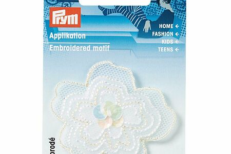 926160 Термоаппликация Цветок с пайетками, органза, белый цв., 1шт Prym доставка