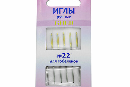 110203/g Иглы ручные с золотым ушком для гобеленов №22, 6шт. доставка