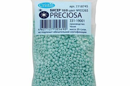 Аккуратно откалиброванный бисер классической формы из чешского стекла. Непрозрачный, матовый или с умеренным блеском благодаря особому покрытию. Подходит для создания украшений, вышивки одежды, картин, предметов интерьера и др. Допускается стирка при температуре до 40гр.C, не портится от косметики или пота. Чтобы сохранить яркость и цвет, рекомендуется беречь этот бисер от воздействия прямых солнечных лучей. Цвет: светло-бирюзовый. Размер: 10/0 (2,3 мм). Объем: расфасован в пакетики по 20 г.