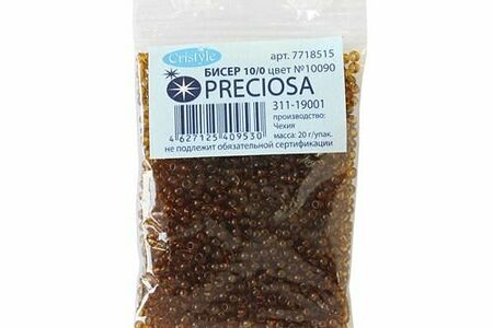 Чешский бисер Preciosa – аккуратно откалиброванный, однородный по размеру и без бракованных элементов. Имеет круглую форму – это универсальная форма, которая подходит и для вышивки, и для плетения украшений, фигурок, других поделок. Бисеру из чешского стекла доверяют мастерицы во всем мире. Он сохраняет цвет и яркость длительное время, в том числе под воздействием косметики, пота, при длительном контакте с кожей. Вышитые бисером изделия допускается стирать в ручном режиме при температуре до 40 градусов Цельсия. Тип: прозрачный. Размер: 10/0 (2,3 мм). Объем: расфасован в пакетики по 20 г.