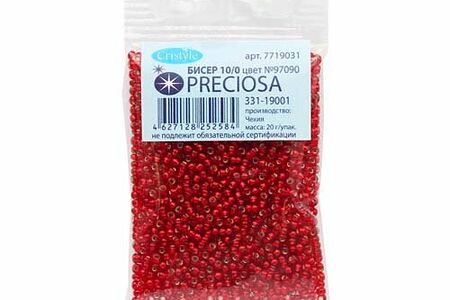 Чешский бисер Preciosa – аккуратно откалиброванный, однородный по размеру и без бракованных элементов. Имеет круглую форму – это универсальная форма, которая подходит и для вышивки, и для плетения украшений, фигурок, других поделок.