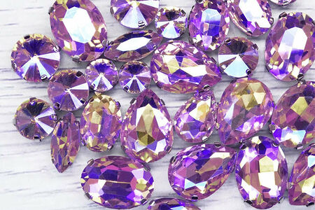 МФ-32 Хрустальные стразы в металлических цапах, форма страз: МИКС, сиреневый с AB покрытием, 10шт/упак доставка