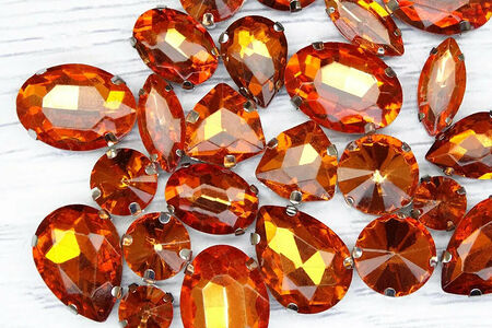 МФ-17 Хрустальные стразы в металлических цапах, форма страз: МИКС, оранжевый, 10шт/упак доставка