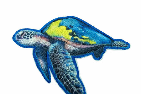 Термоаппликация 'Морская черепаха' изготовлена из вторично переработанных материалов. Повторное использование сырья позволяет защитить окружающую среду от загрязнения.
