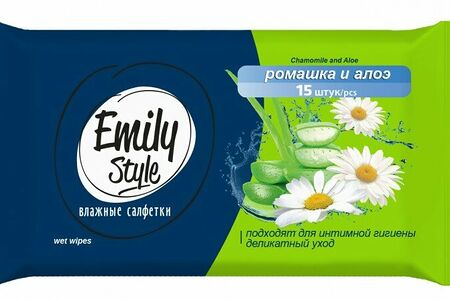 Салфетки влажные экстракт ромашки и алоэ д/интимной гигиены 15 шт Emily Style доставка