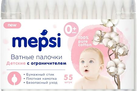 Ватные палочки Mepsi с ограничителем детские 55 шт доставка