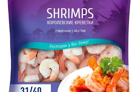 Креветки Delight Королевские 31/40 очищенные с хвостом варено-мороженые 800г доставка
