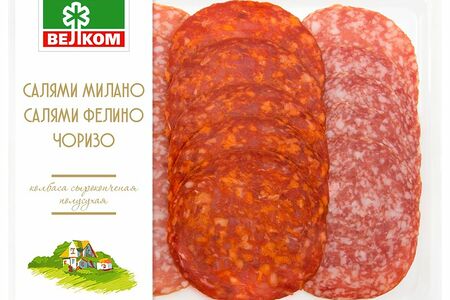 Колбаса сырокопченая Велком Ассорти Салями Милано Салями Фелино Чоризо нарезка доставка
