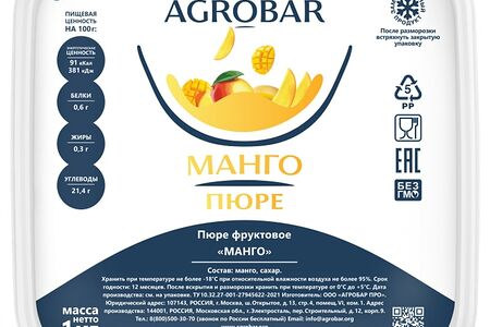 Пюре фруктовое Agrobar Манго 1кг доставка