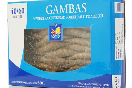 Креветка свежемороженая с головой 40/60 ТМ Gambas (Гамбас) доставка