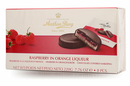 Конфеты шоколадные с марципаном Anthon Berg Малина в апельсиновом ликере доставка