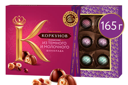 Коркунов шоколадные конфеты из темного и молочного шоколада с фундуком, вафельной крошкой и ореховой начинкой, 165г доставка