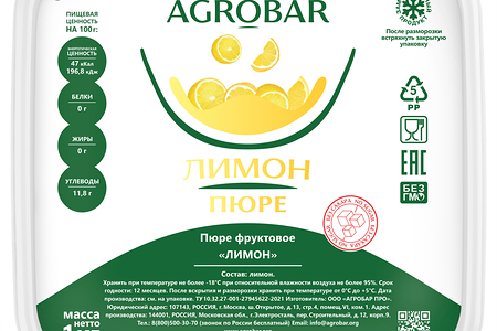 Пюре Agrobar фруктовое лимон замороженное доставка